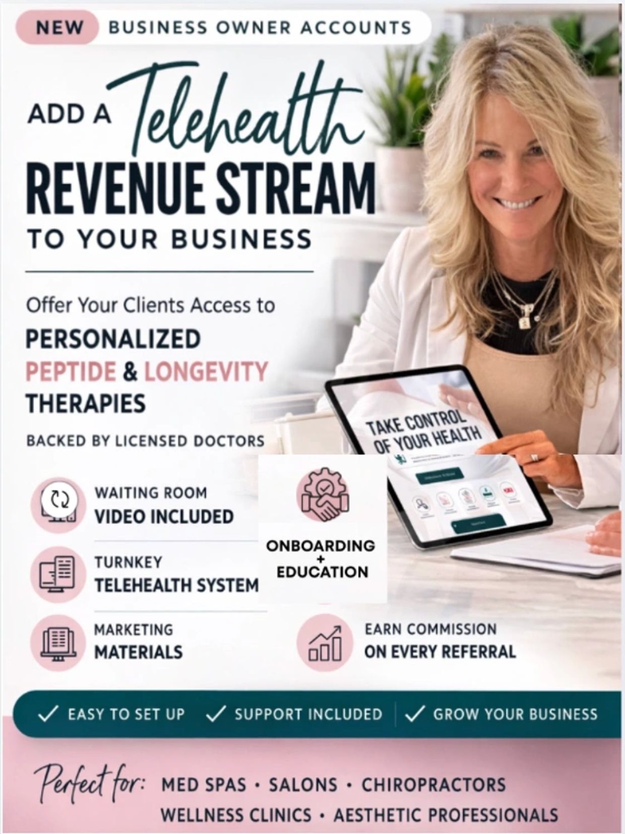 Many practitioners want to offer peptide therapies but are limited by regulatory requirements or the need for a prescribing physician. This platform provides a fully compliant telehealth medical team, allowing health professionals to share peptide solutions without the expense of hiring their own medical director.